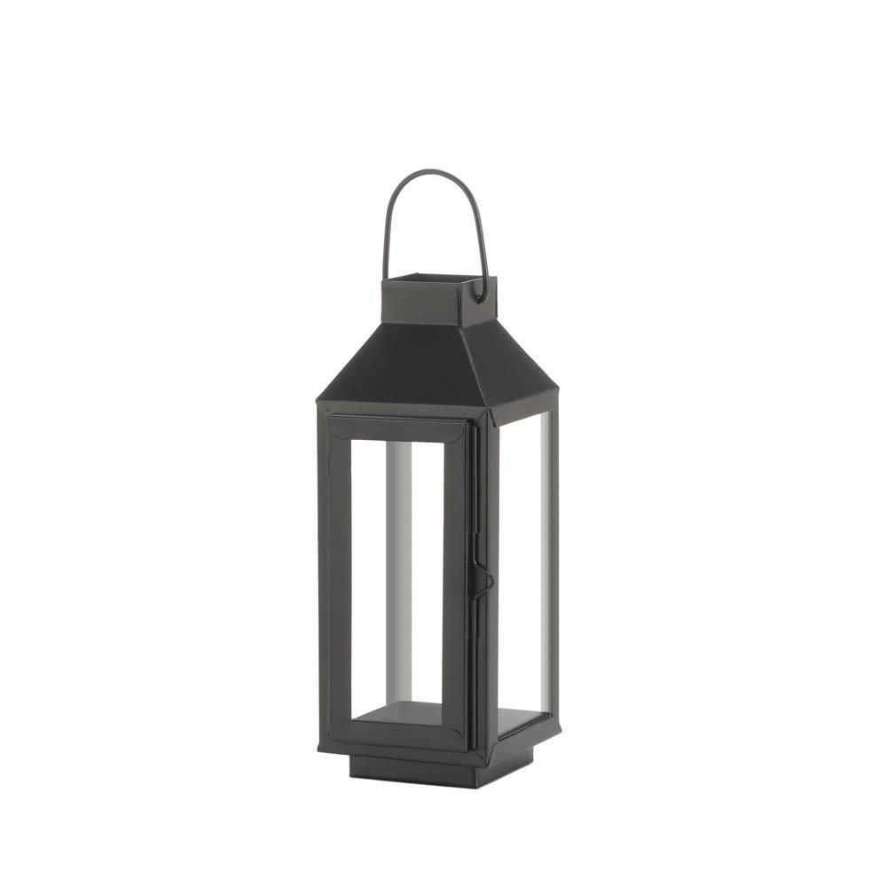 • Charming and traditional, this small square top black lantern will make a beautiful addition to your indoor or outdoor living space. This lantern features a durable iron frame with an open square top and glass window panes. Complete with a sleek matte black finish and large handle, this candle lantern will look stunning hanging in your backyard or sitting on top of your mantel.